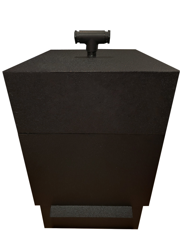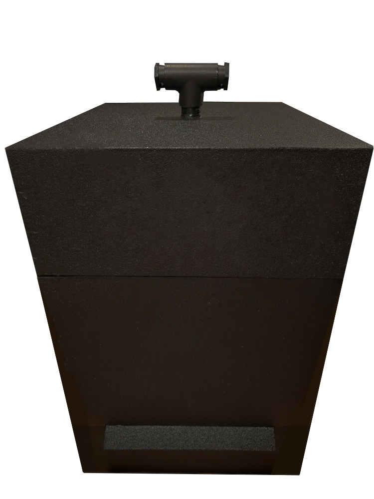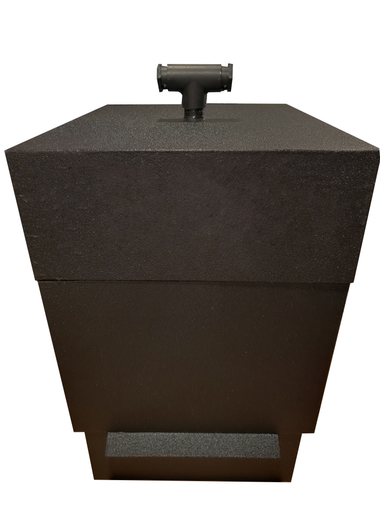 - On top of the Foundation sits the Vestibule. A stainless-steel Pan w/vertical cover for the pan opening is for water (humidity control), or glass bead (thermal mass). The pan slides in and out of the Vestibule through an outside opening, and rests on two rails inside the Vestibule.